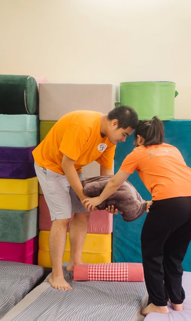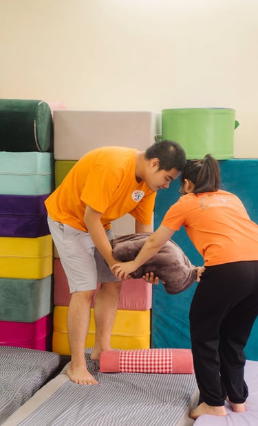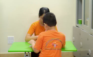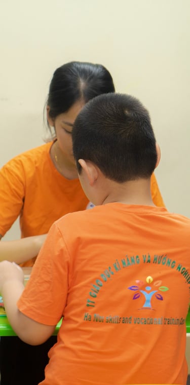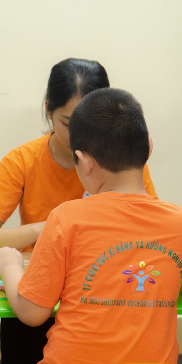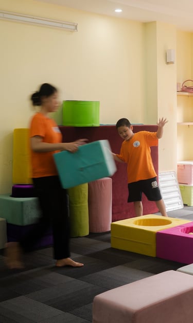 1/ Lớp can thiệp sớm dành cho trẻ dưới 6 tuổi: Bằng các test Denver, CARD, thang đo tự kỷ, tăng động giảm tập trung,.. các bạn được chẩn doán tình trạng của mình tất cả các lĩnh vực. Sau khi được đánh giá, các bạn nhỏ được lên kế hoạch giáo dục phù hợp, có đánh giá hàng tháng, hàng kỳ. Chương trình học được kết hợp từ chương trình từng bước nhỏ, chương trình giáo dục mầm non quốc gia kết hợp với nhiều chương trình khác như Montessori, Glenn Doman, Reggio Emilia… Học dưới dạng trò chơi và bằng nhiều hình thức, phương pháp khác nhau, các bạn nhỏ sẽ tăng giao tiếp, khả năng diễn đạt, nhận thức, khả năng tập trung chú ý, phát triển vận động tinh – vận động thô.