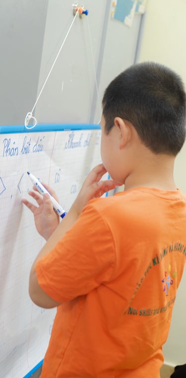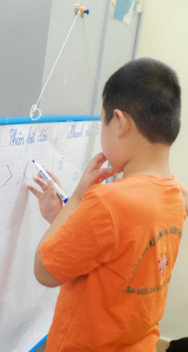 3/ Lớp tiền tiểu học: Để chuẩn bị những kiến thức vào lớp 1, trẻ đặc biệt gặp nhiều khó khăn, nhưng với giáo trình được thiết kế dành riêng cho trẻ đặc biệt hỗ trợ các con những kiến thức nhận biết, tiền Toán, tiền đọc, tiền viết,... và đặc biệt dưới cách dạy lôi cuốn chắc tay của giáo viên, những bạn nhỏ của HSVC đã chuẩn bị cho mình được hành trang dày dặn, tự tin với môi trường mới.Khóa học Tiền tiểu học tại HSVC sẽ giúp con:Nắm bắt hành vi, cân bằng tâm lý điều chỉnh cảm giác, phù hợp với nhận thức sát thực của con.Dẫn dắt logic vấn đề kiến thức phù hợp với thể trạng của trẻ như: -Nhận diện được chữ và số, Rèn chuẩn tư thế ngồi, cầm bút đúng cách, Giúp con đánh vần, đọc trơn, Con tự viết được bảng chữ cái, chữ số đúng ô li , dòng kẻ,...-Rèn nề nếp trước khi vào lớp 1: vệ sinh cá nhân đúng nơi quy định, kỹ năng tự phục vụ bản thân cơ bản,....