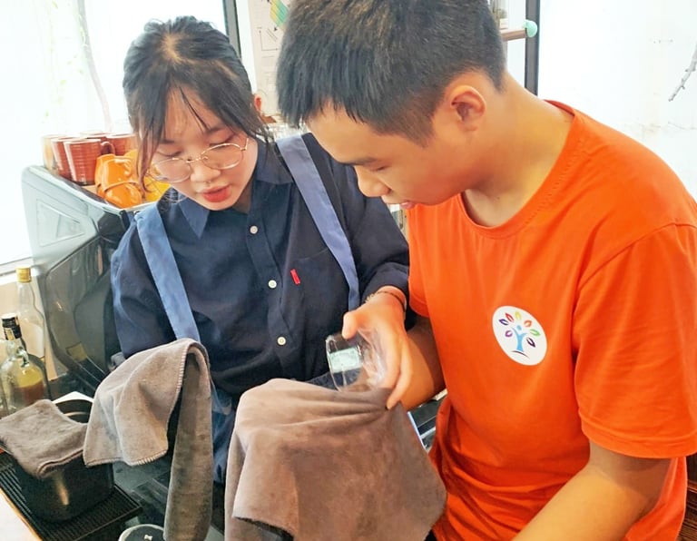 Ngày hôm nay là một ngày thật tuyệt vời. Chúng tôi đã có một buổi trải nghiệm tại quán cafe 23 Cao Bá Quát. Không chỉ học từ những việc nhỏ nhất như lau bàn, giặt khăn, rửa chén, úp cốc.