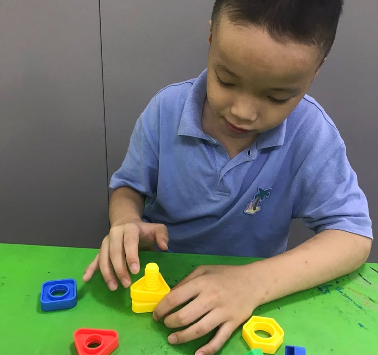 Ở trung tâm HSVC, một trong những cách giúp trẻ tập trung hơn đó là cùng trẻ xếp hình.